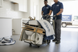 Fedex Freight delivers the product curb-side only and arrangements to move the product inside the premise will have to be made by the customer.