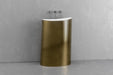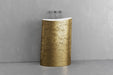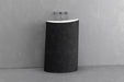 Is it slightly imperfect or more than perfect? Wabi-sabi or shaped with bold intention? A cylinder gently bowed on one side leans upwards to an open mouth that promises to consume the cares of your day in purifying water. Its natural asymmetry conjures the movement of the ocean and the power of its flow while its arresting shape lures the observer with a siren song.