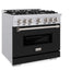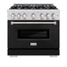 ZLINE 36" Dual Fuel Range, Gas Cooktop, Electric Convection Oven Stainless Steel, Black Matte Door CDR-BLM-36