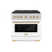 Luxury isn’t meant to be left desired—it’s meant to be attainable. The ZLINE Autograph Edition 36 in. 5.2 cu. ft. Paramount Gas Range with 6 Burner DuoPro™ Cooktop and Convection Gas Oven with White Matte Door and Polished Gold Accents (PSGRZ-WM-36-G) features a high-powered gas cooktop with 6 hand-crafted Italian dual-ring brass burners and a versatile gas convection oven allowing you to master every meal. Double your cooking power on every burner with a DuoPro™ Cooktop that delivers ultimate flame control flexibility and unprecedented culinary confidence.