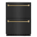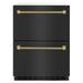 Luxury isn’t meant to be left desired—it’s meant to be attainable. The ZLINE Autograph Edition 24 in. Touchstone 168 Can Outdoor-Rated Dual Refrigerator Drawer with Black Stainless Steel Doors and Champagne Bronze Helix Handles (RDSOZ-BS-24-KCB) features state-of-the-art cooling technology, dual smooth glide soft-closing drawers, and an expansive interior capable of holding multiple beverages. Designed with a fully wrapped, anti-sweat stainless steel exterior and durable black stainless steel doors perfect for indoor or outdoor installation, ZLINE Autograph Edition Touchstone Refrigerator Drawers are masterfully crafted to let you host parties of any size for any occasion.