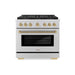 Luxury isn’t meant to be left desired—it’s meant to be attainable. The ZLINE Autograph Edition 36 in. 5.2 cu. ft. Paramount Dual Fuel Range with 6 Burner DuoPro™ Cooktop and Electric Convection Oven in Stainless Steel with Champagne Bronze Helix Handle and Accents (PSDRZ-36-KCB) features a high-powered gas cooktop with 6 hand-crafted Italian dual-ring brass burners and a versatile electric convection oven allowing you to master every meal. With ZLINE DuoPro™, every burner brings the performance you need—wherever you need it.