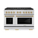 Luxury isn’t meant to be left desired—it’s meant to be attainable. The ZLINE Autograph Edition 48 in. 6.7 cu. ft. Paramount Double Oven Gas Range with 8 Burner Cooktop in Stainless Steel and Champagne Bronze Helix Handles and Knob Accents (SGRZ-48-KCB) features a versatile gas cooktop with 8 Italian-made auto-reignition burners, a large high-performing gas convection oven, a small baking oven, enhanced cast iron grates, and Horizon oven door window designs allowing you to master every meal. With a modern, timeless style and refined functionality, ZLINE Paramount Gas Ranges are masterfully crafted to deliver an elevated culinary experience.
