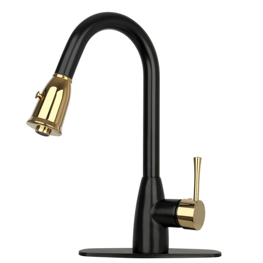 View full detailsTwo-Tone Matte Black & Gold Pull Out Kitchen Faucet with Deck Plate, Single Level Solid Brass Kitchen Sink Faucets with Pull Down Sprayer - AK455BLZG
