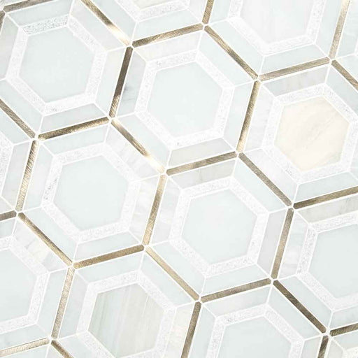 Showcase your passion for the arts with the MSI Medici Gold Pattern mosaic tile. Exquisite gold metal and cool multi-hued stone harmonize to form a...