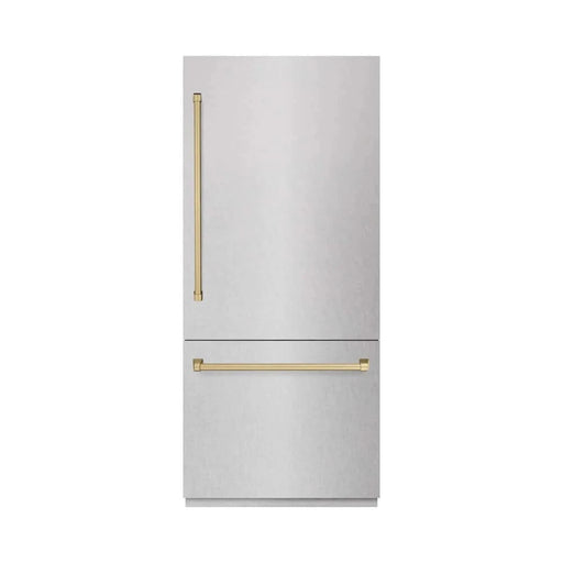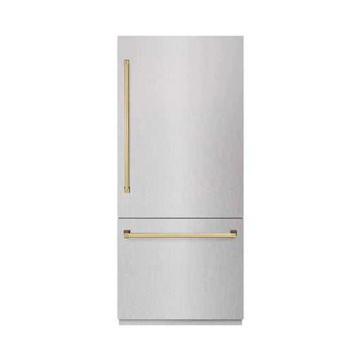 View full detailsZLINE 36" Built-In Bottom Freezer Refrigerator,Water Dispenser, Ice Maker, DuraSnow® Polished Gold RBITZ-SN-36-G