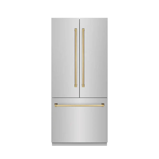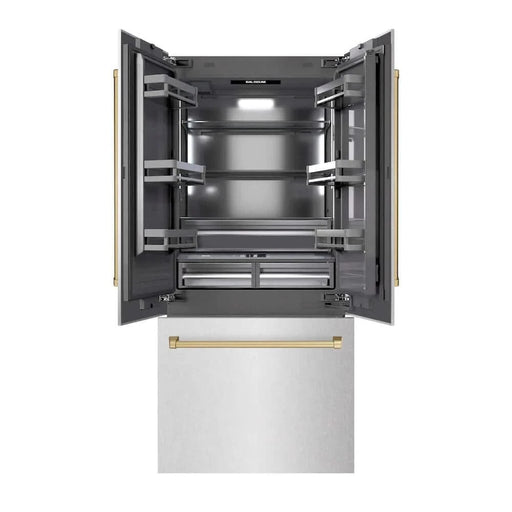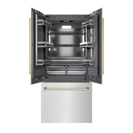 ZLINEZLINE 36" Built-In Bottom Freezer Refrigerator with Water Dispenser, Ice Maker, DuraSnow® Stainless Steel, Graphite Gray Interior, Polished Gold GR...