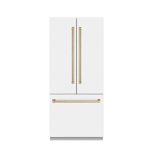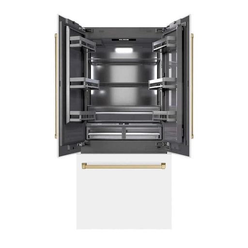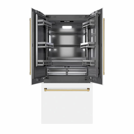 ZLINEZLINE 36" Built-In Bottom Freezer Refrigerator with Water Dispenser, Ice Maker, White Matte, Graphite Gray Interior, Polsihed Gold GRBIVZ-WM-36-G R...