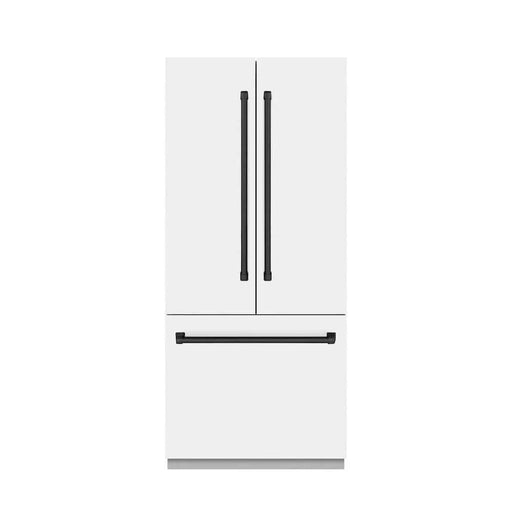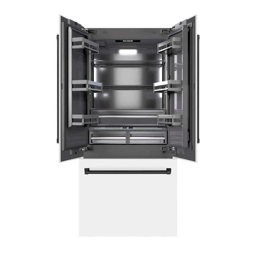 ZLINEZLINE 36" Built-In Bottom Freezer Refrigerator with Water Dispenser, Ice Maker, White Matte, Graphite Gray Interior, Matte Black GRBIVZ-WM-36-MB Re...