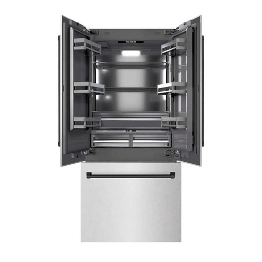 ZLINEZLINE 36" Built-In Bottom Freezer Refrigerator with Water Dispenser, Ice Maker, DuraSnow® Stainless Steel, Graphite Gray Interior, Matte Black GRBI...