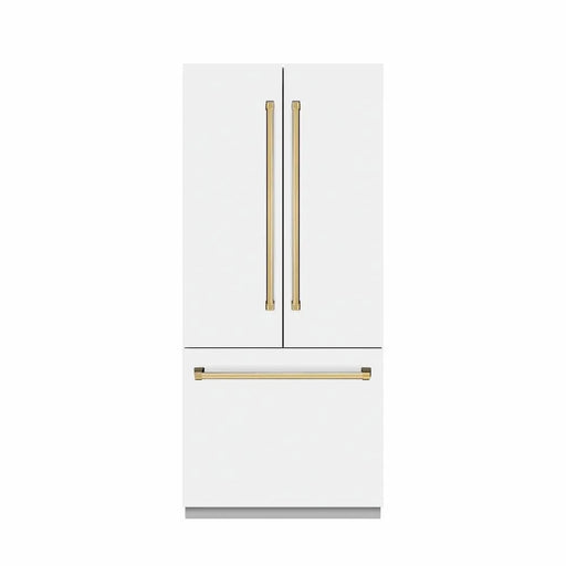 ZLINEZLINE 36" Built-In Bottom Freezer Refrigerator with Water Dispenser, Ice Maker, White Matte, Graphite Gray Interior, Champagne Bronze GRBIVZ-WM-36-...