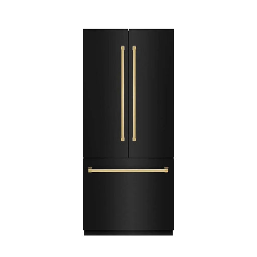 ZLINEZLINE 36" Built-In Bottom Freezer Refrigerator with Water Dispenser, Ice Maker, Black Stainless Steel, Graphite Gray Interior, Champagne Bronze GRB...