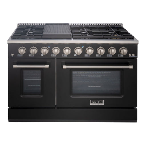 Akicon 48" Slide-in Freestanding Professional Style Gas Range with 6.7 Cu. Ft. Oven, 8 Burners, Convection Fan, Cast Iron Grates. Black & Stainless Steel