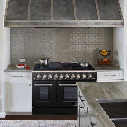 View full detailsAkicon 48" Slide-in Freestanding Professional Style Gas Range with 6.7 Cu. Ft. Oven, 8 Burners, Convection Fan, Cast Iron Grates. Black & Gold