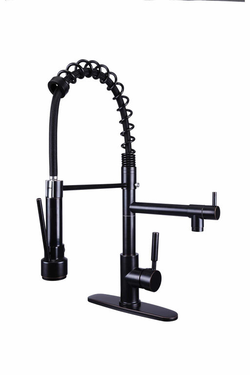 View full detailsOil Bronze High Arc Kitchen Sink Faucet with Pull Down Spray and Deck Plate