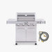 Elevate your grilling game with our dual fuel gas grill, powered by 60,000 BTUs distributed over 4 stainless steel burners and 1 side burner: