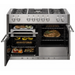The 48" Mercury Dual Fuel Model features an extra-large, 7-Mode Multi-Function Oven, as well as a second extra-large, true European convection oven. The Glide Out Broiler System with Full Broil and Half Broil mode provides complete coverage with adjustable heights and extendable gliding tray spacious enough to cook six 6-ounce steaks at once. Nine eye-catching hi-fi Style Controls deliver precise power to each burner and oven with stereo-like grace.The natural gas cooktop with five sealed brass burners are each topped with a porcelain-enamel finish, cast-iron flame spreader to provide superb heat distribution and retention.