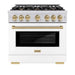 ZLINE 36"" Select Dual Fuel Range Gas Cooktop Electric Convection Oven Stainless Steel White Matte Doors Champagne Bronze HDRZ-WM-36-CB