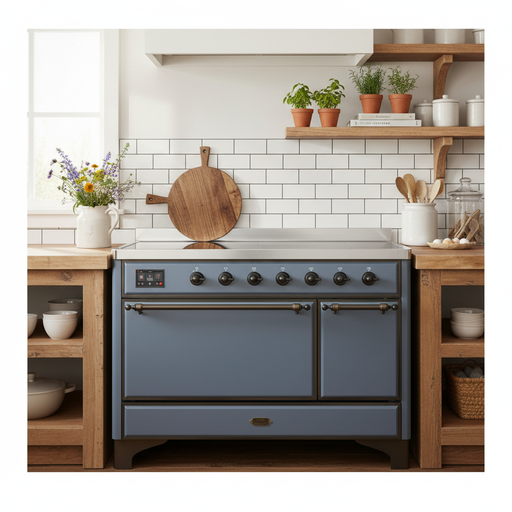 ILVE 48"Majestic III Induction Range, Blue Grey, Burnished Trim UMIB48QNR3BGB Please call (800)604-1380 Ext#2 before placing your order to confirm...