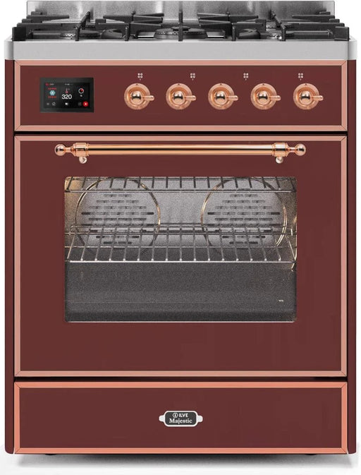 View full detailsILVE Majestic II 30" Dual Fuel Range, Burgundy, Copper Trim UM30DNE3BUP