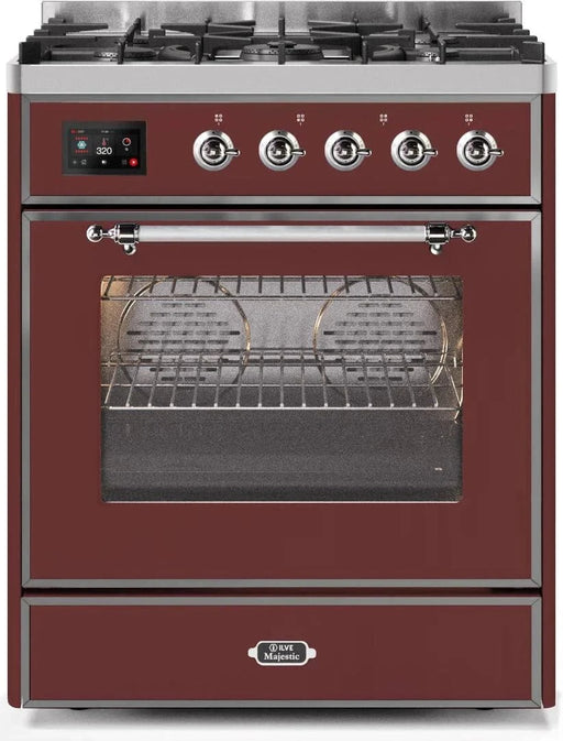 View full detailsILVE Majestic II 30" Dual Fuel Range, Burgundy, Chrome Trim UM30DNE3BUC