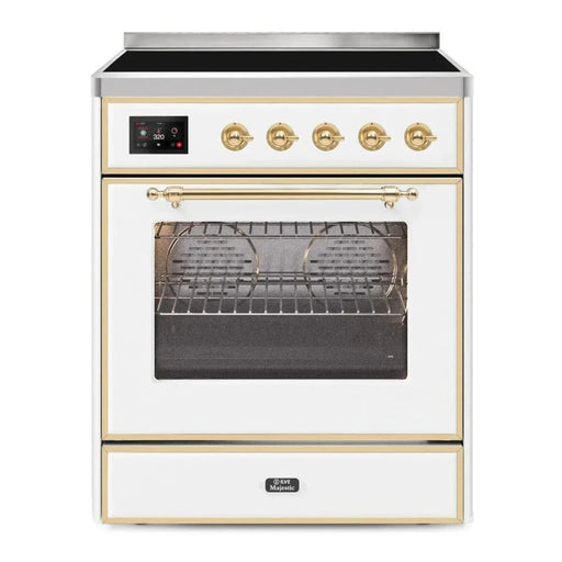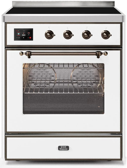 ILVE Majestic II 30" Dual Fuel Range White, Bronze Trim UM30DNE3WHB