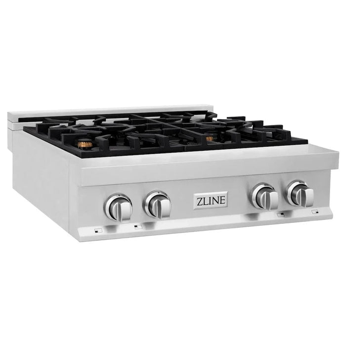 ZLINE 30" Porcelain Rangetop With 4 Gas Brass Burners, Griddle RT-BR-GR-30