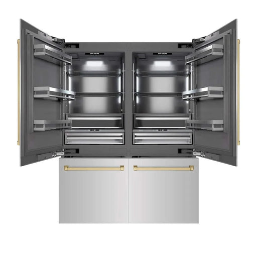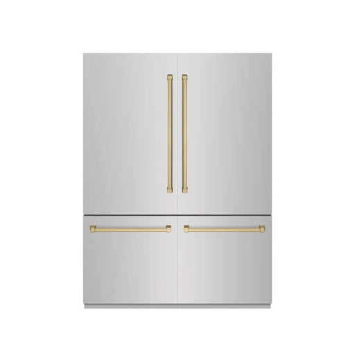 ZLINEZLINE 60" Built-In Bottom Freezer Refrigerator with Water Dispenser, Ice Maker, Stainless Steel, Graphite Gray Interior, Polished Gold GRBIVZ-304-6...