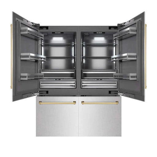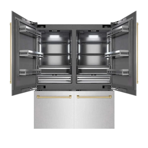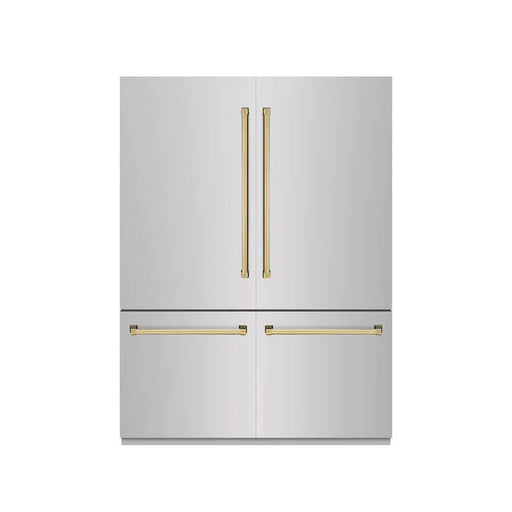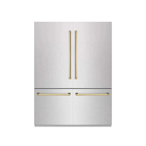 ZLINEZLINE 60" Built-In Bottom Freezer Refrigerator with Water Dispenser, Ice Maker, DuraSnow® Stainless Steel, Graphite Gray Interior, Polished Gold GR...
