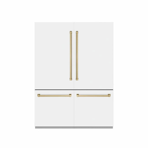 ZLINEZLINE 60" Built-In Bottom Freezer Refrigerator with Water Dispenser, Ice Maker, White Matte, Graphite Gray Interior, Polished Gold GRBIVZ-WM-60-G R...
