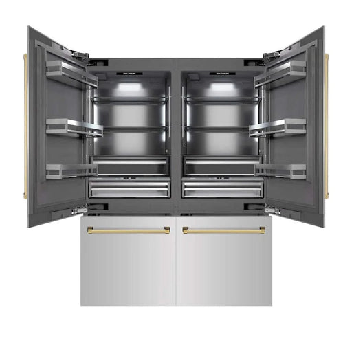 ZLINEZLINE 60" Built-In Bottom Freezer Refrigerator with Water Dispenser, Ice Maker, Stainless Steel, Graphite Gray Interior, Polished Gold GRBIVZ-304-6...