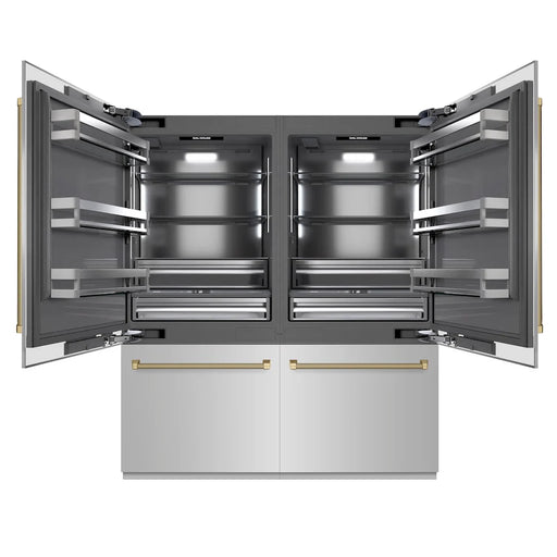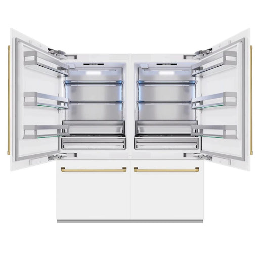 View full detailsZLINE 72" Built-In Bottom Freezer Refrigerator,Water Dispenser, Ice Maker, White Matte Polished Gold RBITZ-WM-72-G