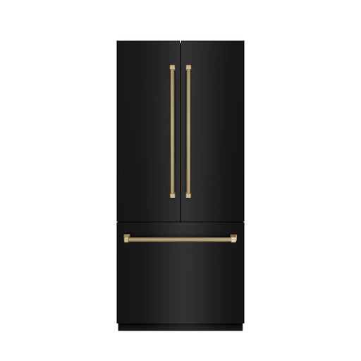 ZLINEZLINE Autograph Edition 36" French Door Built-In Bottom Freezer Refrigerator, Water Dispenser, Ice Maker, Black Stainless Steel, Stainless Steel In...