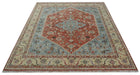 This antique-look Traditional Medallion rug features a unique combination of colors in gray, rust, and beige, and is hand-knotted from high-quality wool. Each rug is one of a kind, perfect for adding a unique finishing touch to any room.