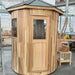 Experience the charm of our wooden cabin sauna, designed with you in mind. This compact yet spacious circular sauna is a versatile gem that can easily find its place in any corner of your garden. It's not just a sauna; it's your personal oasis.
