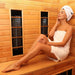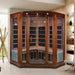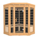 full spectrum and carbon panel, with wooden sauna house as the carrier. The heating plate is inlaid around the sauna room, the heating is even and stable wave band; with intelligent control system, the time and temperature are adjustable.