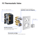 Our shower system includes a 3-way thermostatic rough-in valve with trim. It comes with a thermostatic cartridge, and each function works both together and separately for easy customizability.