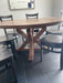 Canyon style round table . We use 2” kiln dried maple for the top. Oak is also included in our pricing other woods can be used as well add additional cost.  Each table is custom built when you place your order and every table is unique.