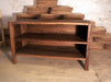 A lovely blend of modern design and reclaimed antique oak, our sturdy media console looks great in any setting! Shown here with brown stain and low gloss hand rubbed wax finish. Matching end tables also available!