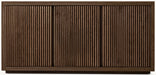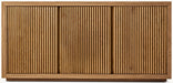 Narrow reeding defines our collection from designer Nils Verhoeven, lending dimension and serving as a counterpoint to the rustic character of reclaimed oak. Sourced from decades-old buildings, the solid oak is paired with distressed oak planks for consistency and stability. Each piece is handcrafted of wood that retains its natural character, bearing the occasional knot, nick or crack so that no two pieces are exactly the same.