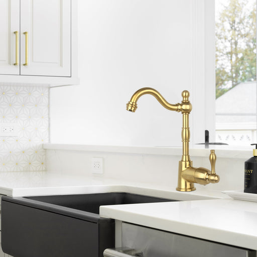View full detailsOne-Handle Brushed Gold Widespread Kitchen Bar Faucet - AK96118P1-BTG