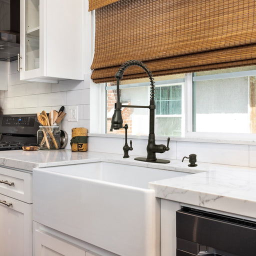 View full detailsOil Rubbed Bronze Pre-Rinse Spring Kitchen Faucet, Single Level Solid Brass Kitchen Sink Faucets with Pull Down Sprayer - AK96518A-ORB