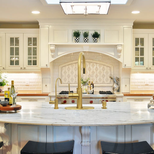 View full detailsOne-Handle Brushed Gold Pot Filler Kitchen Faucet with Side Sprayer - AK96918P1