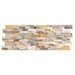 DaVinci 3D Onyx Travertine Ledger 3D Panel 6"x24" Honed and Split-face mixed Natural Wall Tile offers soft beige colors with hints of gold color onyx for unstoppable design versatility. Featuring multiple sized rectangular stones in varying thicknesses, this panel adds interest and dimension to any space.