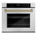 Luxury isn’t meant to be left desired—it’s meant to be attainable. The ZLINE Autograph Edition 30 in. Professional True Convection Single Wall Oven with Air Fry and Self Clean in Stainless Steel with Champagne Bronze Helix Handle (WASZ-30-KCB) provides a professional culinary experience by pairing reliable, everyday performance with contemporary convection cooking capabilities and cutting-edge air frying technology. Achieve ZLINE Attainable Luxury® excellence with innovative features designed to enhance your kitchen’s capability.