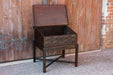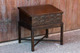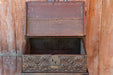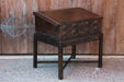 A wonderful writing box from the 1700s that sits on a custom stand. The box features a carved front with iron lock and slanted top. It can be used as a lovely nightstand or end table.