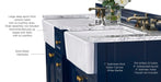 You just can’t take your eyes off our Adeline Collection. It conveys understated elegance that resonates the rich history of the farmhouse sink period. The large bathroom vanity with farmhouse sink is not only aesthetically pleasing, but also functional for your everyday use. In crafting the Adeline collection, no detail was overlooked - from selecting quality wood to using the most durable soft-close hardware. The vanity set includes: a furniture style cabinet, a farmhouse basin, an imported Italian Carrara white marble top, a 4” solid wood backsplash, solid wood dovetailed drawer boxes, slow closing doors/drawers, and satin brushed hardware. Being meticulously crafted, the Adeline Collection will be cherished by your family for generations to come.