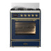 ILVE Majestic III 30"Dual Fuel Range Blue Brass Trim UM30NR3MBG