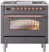 ILVE Nostalgie II 36" Dual Fuel Liquid Propane Range, Matte Graphite, Copper Trim UP36FNMPMGPLP