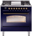 ILVE Nostalgie II 36" Dual Fuel Natural Gas Range, Blue, Bronze Trim UP36FNMPMBB